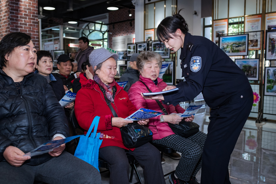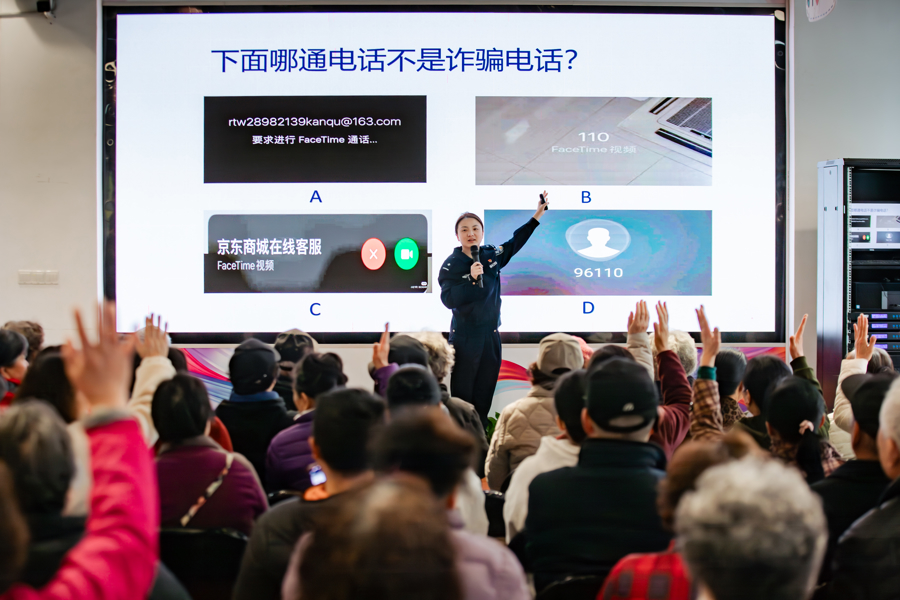 3月以来,闵行公安在全区范围内启动“银龄守护”专项宣传活动,覆盖14个街镇(工业区)611个居(村)委,面向60岁以上老年群体,围绕反诈防骗、消防隐患、交通安全三大风险点开展“全覆盖”式授课,把安全知识送到老人家门口。